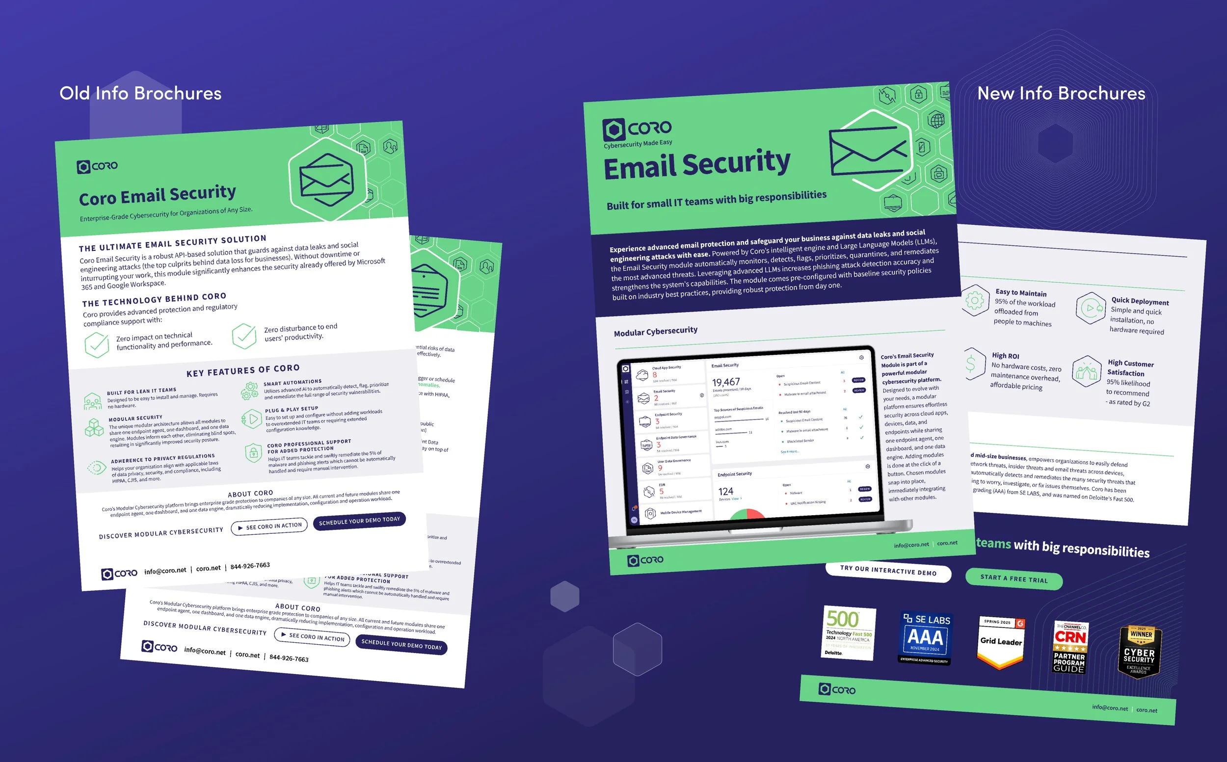 I was hired to lead a full end-to-end strategic rebrand. This included repositioning Coro as the world’s easiest cybersecurity solution, as well as developing a clear brand purpose, vision, values, a distinct brand personality, core message, story frameworks, tagline (Cybersecurity Made Easy), and refreshed brand identity that better reflected the new strategy.