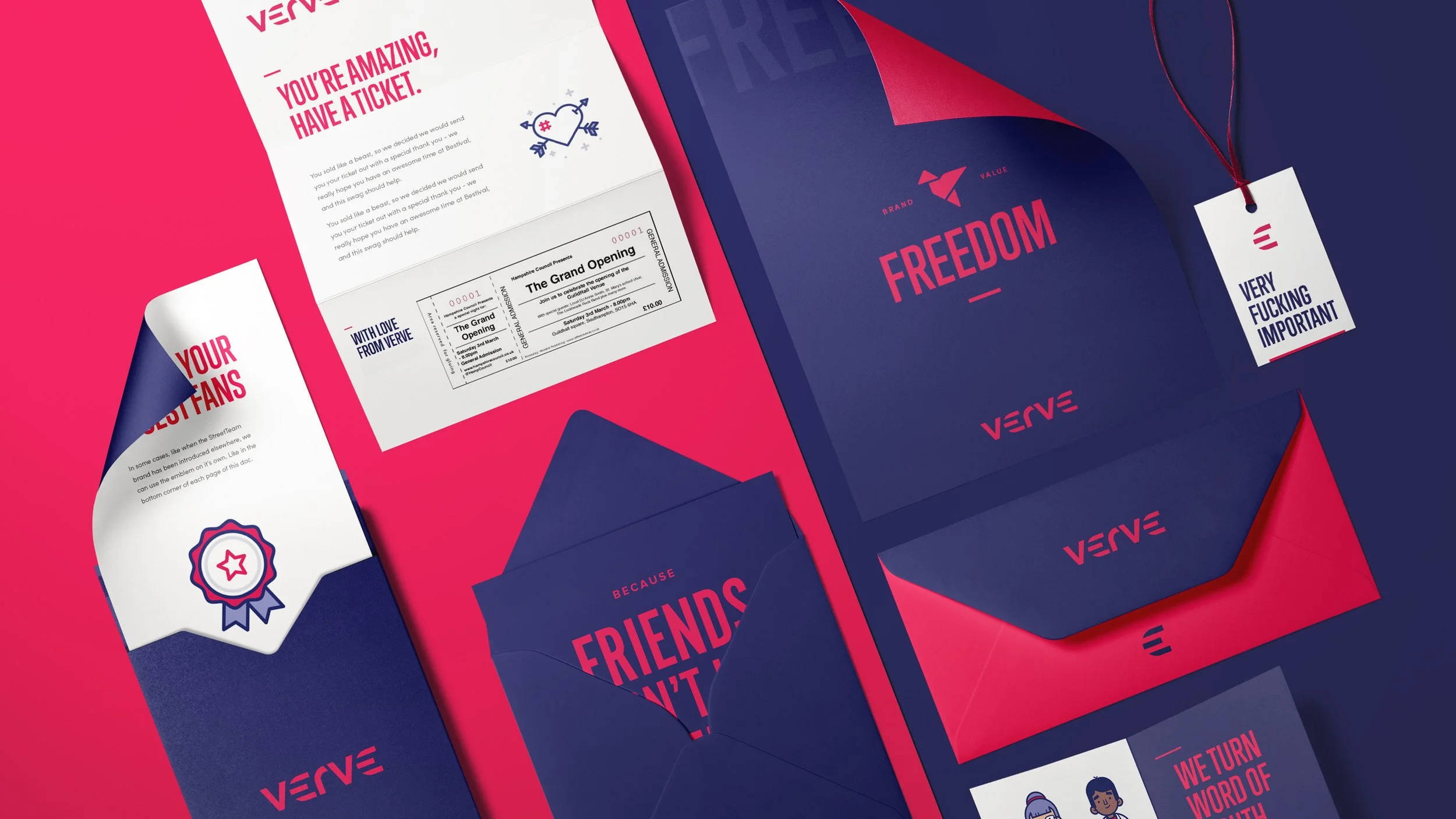 Verve allows fans of festivals and music events to sell tickets to their friends in exchange for experiential rewards. Having completed their Series B of fundraising, the brand was in need of redevelopment to increase its visual impact and presence.